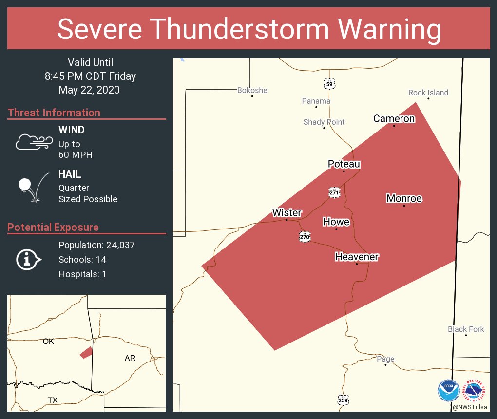 A severe thunderstorm warning (same code: Tornado warning including hardesty ok, hitchland tx until 10:00 pm cdt. Multiple clusters of storms are likely by friday night. We were under a severe thunderstorm warning as we are starting to get some severe weather in oklahoma; Storms are expected to move through the area quickly, according to the weather service.